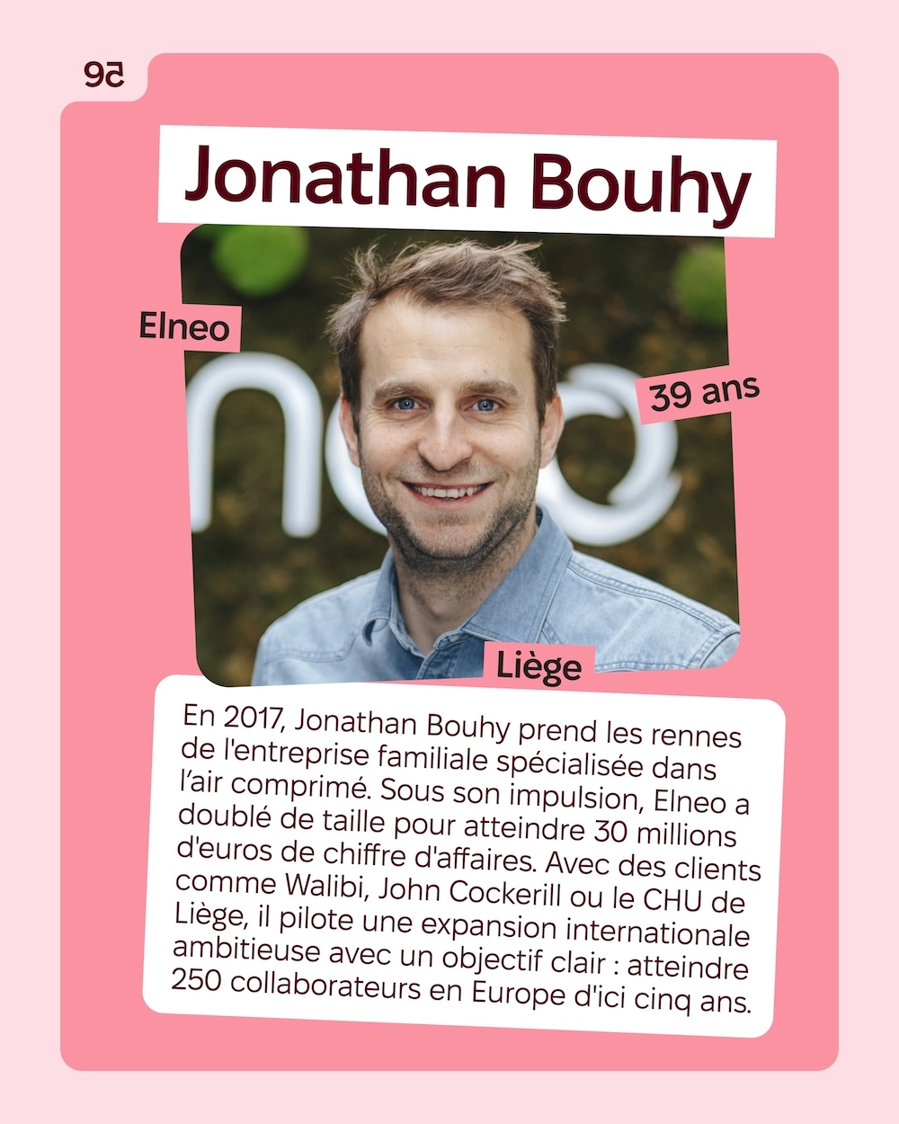 Depuis qu'il a repris les rênes de l'entreprise familiale en 2017, Jonathan a fait doubler la taille d'Elneo pour atteindre 30M€ de CA. Son prochain défi ? Atteindre 250 collaborateurs en Europe d'ici cinq ans.