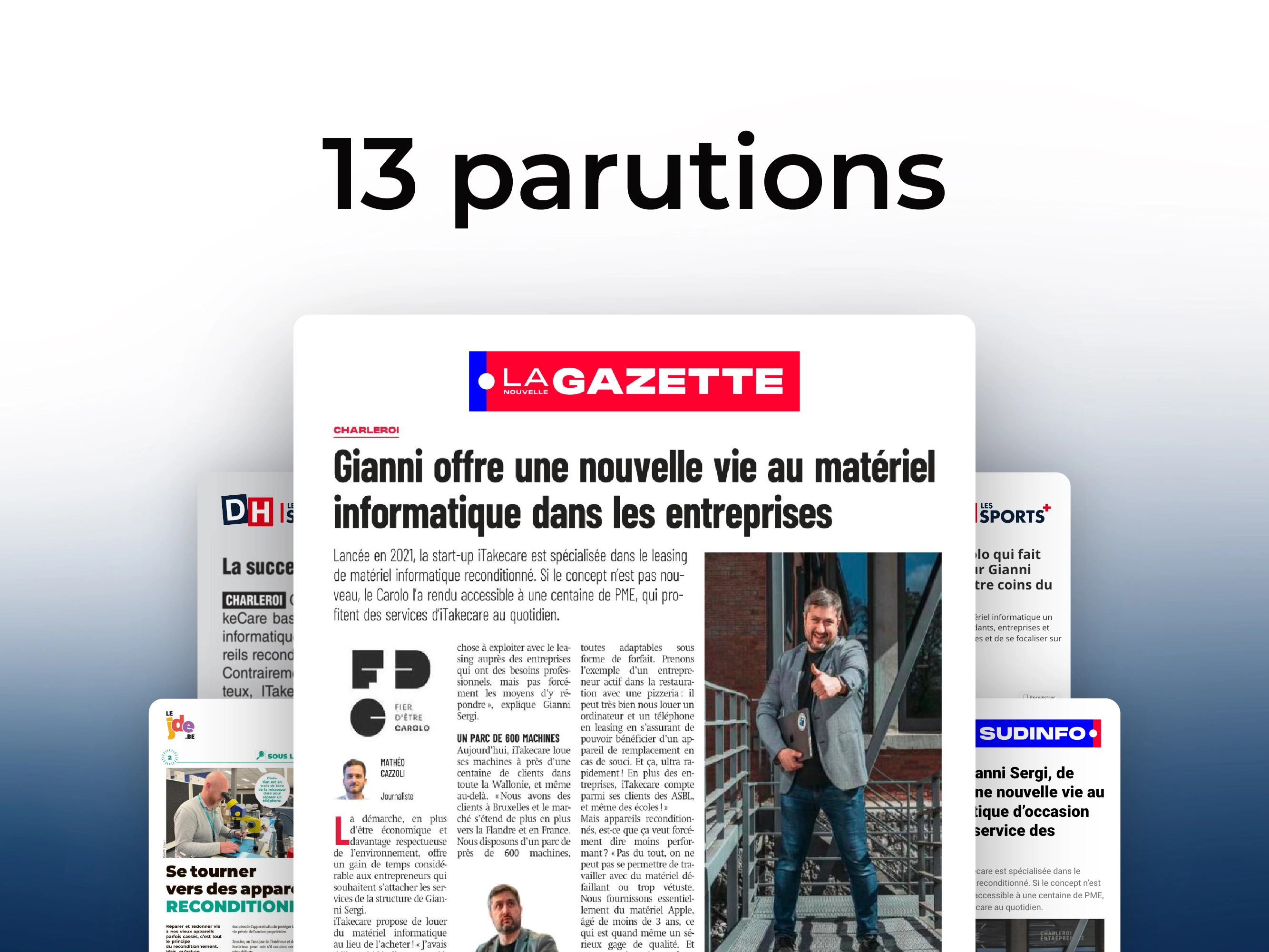 iTakecare est une société carolo qui offre une solution “clé en main” pour la gestion du matériel informatique des entreprises, grâce à la location de matériel reconditionné, professionnel de dernière génération, fiable et performant.
