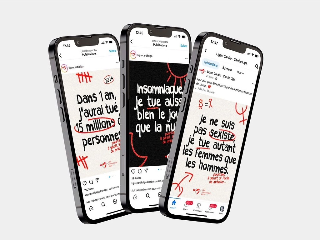 C’est sur cette statistique que nous avons décidé de jouer pour cette campagne de sensibilisation, tournée sous forme d’enquête, en diffusant des indices laissés par ce fameux tueur sur les réseaux sociaux de la Ligue ainsi que sur les écrans de la ville. Ces indices sont toujours accompagnés d’un message de prévention en signalant qu’il n’est jamais trop tard pour adopter les bonnes habitudes afin de sortir de cette statistique.