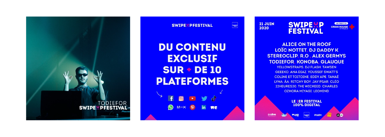 Faced with a cascade of festival cancellations, the public had to reinvent the way they consume culture. With one foot in advertising and the other in the music world, it was important for us as an agency to provide an innovative solution by creating a completely new concept : the first-ever 100% digital festival, streamed on 10 different platforms, on June 21, 2021.