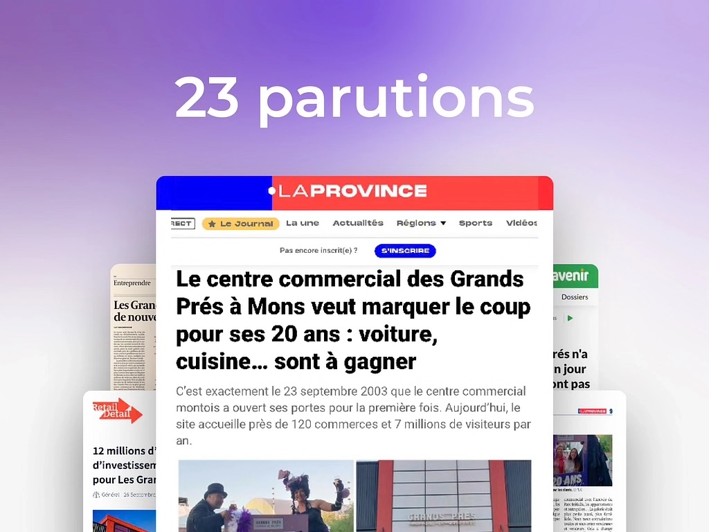 Les Grands Prés, c’est le plus grand centre commercial de Belgique. En septembre 2023, ce shopping montois fête ses 20 ans. Pour l’occasion, Nonante Cinq a convié les médias à une conférence de presse et a mené une campagne presse. L’occasion de faire le bilan sur la fréquentation, l’avenir de la galerie commerçante et de mettre en avant le Shopping Manager, Thomas Cornil.