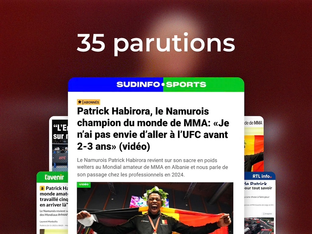 Patrick is one of the young talents we are proud to support at the agency. To give him media exposure matching his achievements, we organized several promotional days allowing him to share his journey with the press. In no time, he became a media favorite, featured by outlets such as RTL, RTBF, L'Équipe, Le Soir, La DH, L'Avenir, and even Brut and Canal+ in France.