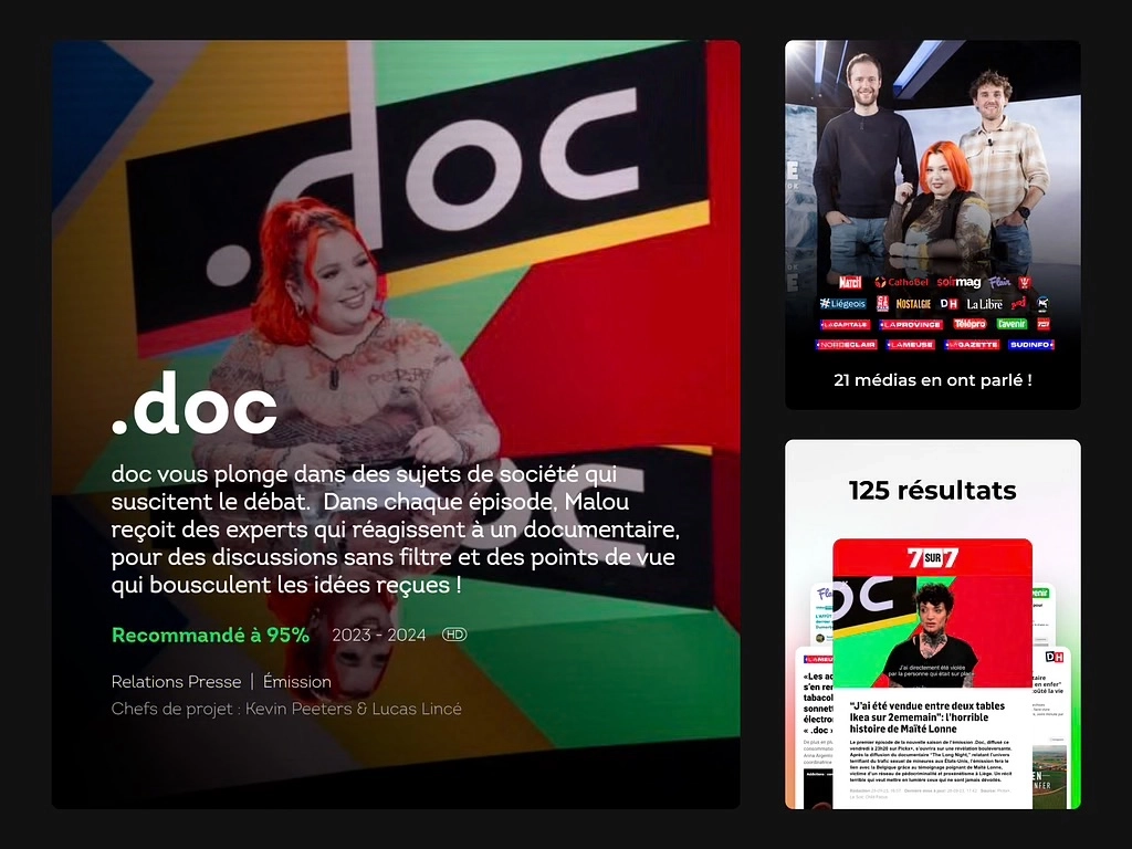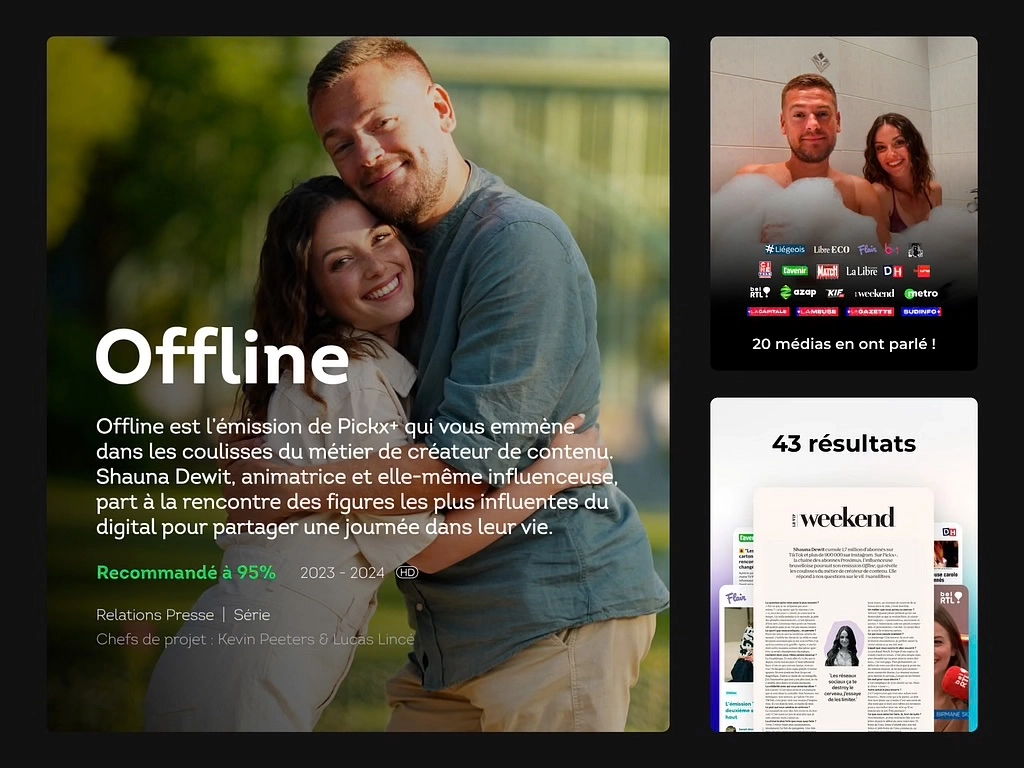 Quelques exemples de campagnes que nous avons menées : Les Oscars, le Festival de Cannes, Fresh Festival, Offline, le Ballon d'Or, .doc, Golden Globes, Champ Contre-Champ. En tout, 53 campagnes, 82 médias différents et près de 700 résultats !